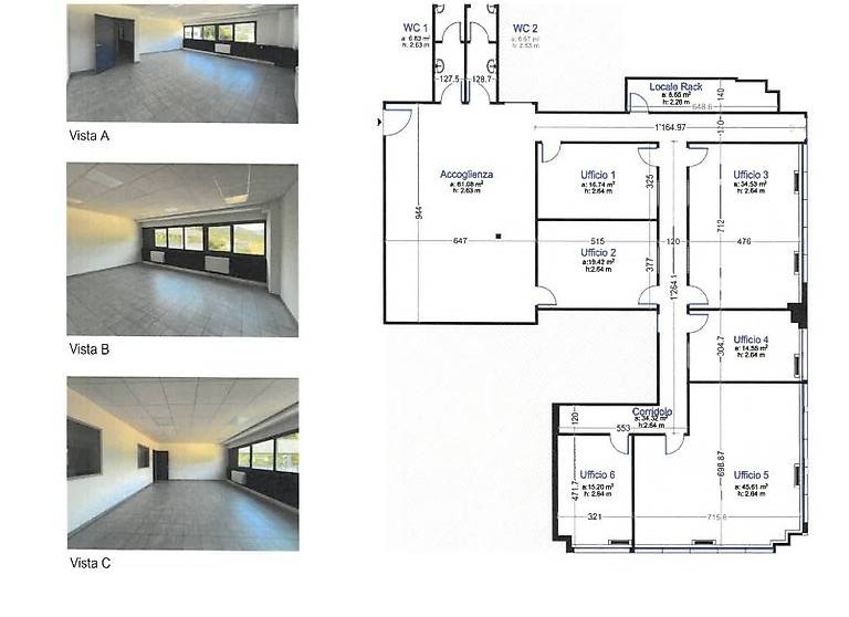-Superfice totale di 265 m², suddivisa in 6 uffici luminosi